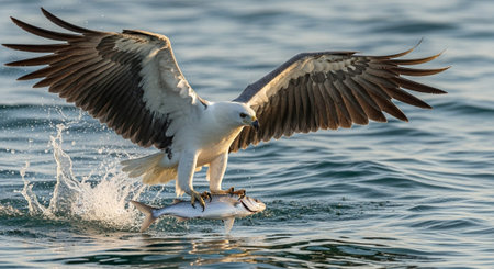 an eagle with a majestic tail soars against a vibrant orange background, bathed in the golden light of nature. this stunning photograph, captured with vray tracing technology, showcases the artist's mastery of monochromatic tones in light brown and light amber. with its high resolution of 8k, this national geographic-worthy composition is a true testament to the beauty of the natural world. ai generated