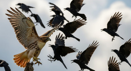 Majestic hawk spreads wings in mid air freedom generated by artificial intelligence generated by artificial intelligence