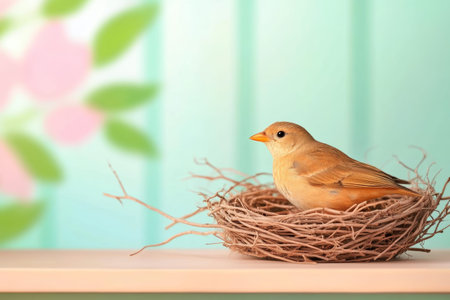 Serene Bird in Nest Against Colorful Background Nature Tranquility Concept.