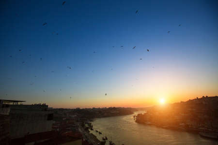 Douro river at evening time from Dom Luis I bridge, Porto, Portugal.