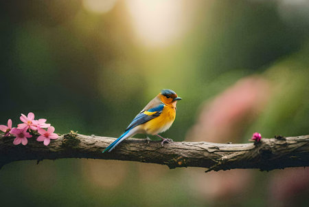 Chirpy Birds tree branch wildlife. Fauna wild. Generate Ai
