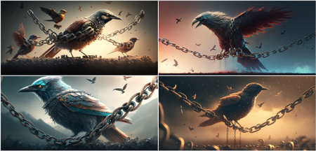 The concept explores the idea of liberation from restrictions and limitations. The transformation of chains into particles symbolizes a shift in perspective and freedom from physical limitations.