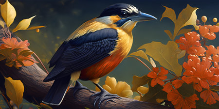 Colorful bird sitting on a branch in the rainforest. Wildlife scene from nature. (AI Generated)