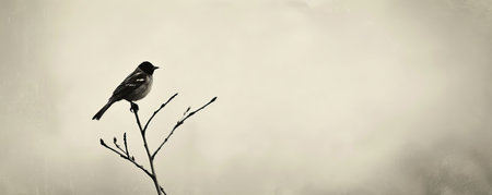 Minimalist bird perched on a single branch, Contemporary, High contrast, Digital photography