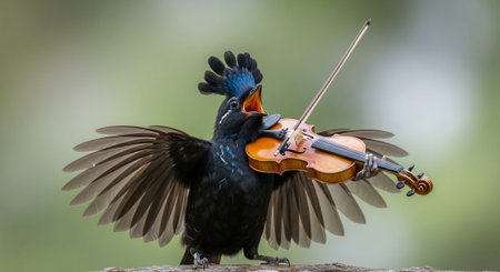 A charming image of a bird singing into a microphone adorned with flowers. This creative concept captures the essence of nature intertwined with music and expression.