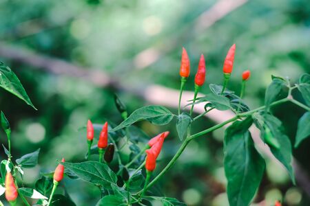 Red chili peppers on the tree in garden.