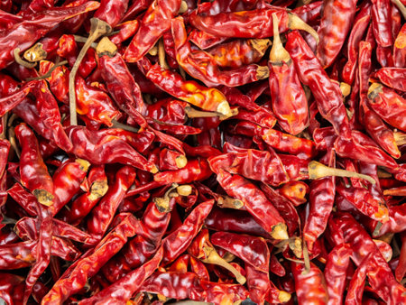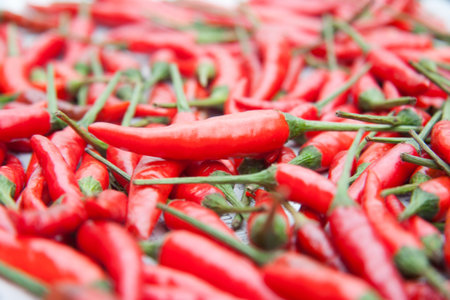 Fresh red chilies on a morning market