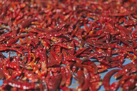 Dry red chili pepper background,selective focus & shallow dof