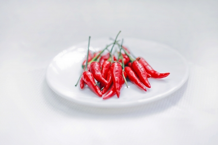 small red chillies on white plate