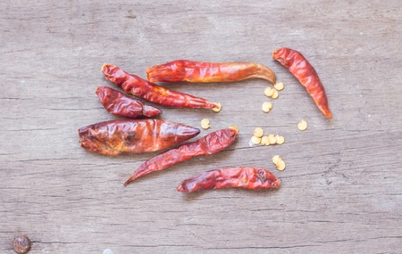dried red chili peppers on the zinc plate