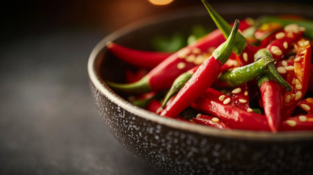 Vibrant red chili peppers, showcasing their fiery color and intense heat, perfect for adding spice and flavor to culinary creations