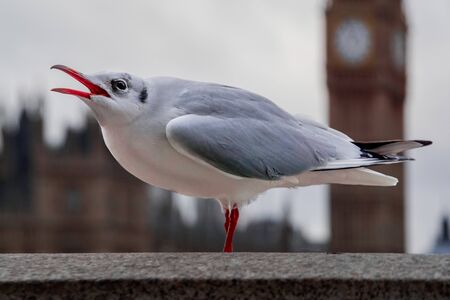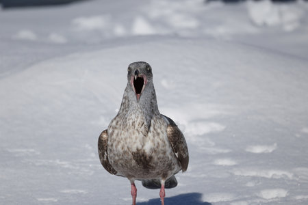 Seagull with an open beak, close-up. Helsinki, Finland. Portrait art, birds, ornithology, science, graphic resources, macro photography concepts