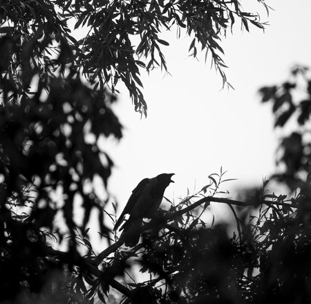 Bird (Asian koel, Eudynamys scolopaceus) Baby bird or chick (nesting) wait foot feeding on a tree in a nature wild