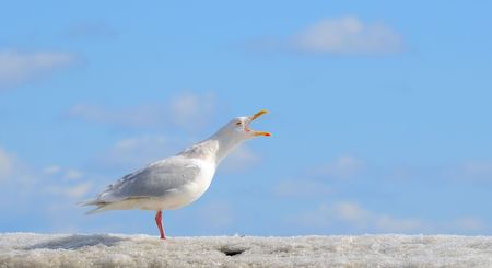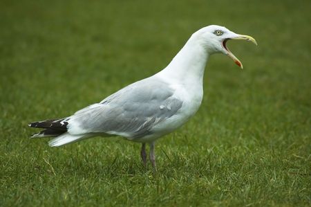 The Glaucous-winged Gull (Larus glaucescens) is demontrating the Long Call in flight