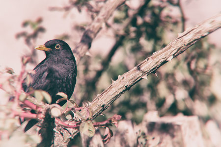 Blackbird (Turdus merula) sitting on a branch
