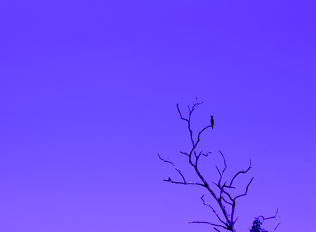 Bird tree black or Blue sky background,Photo illustration