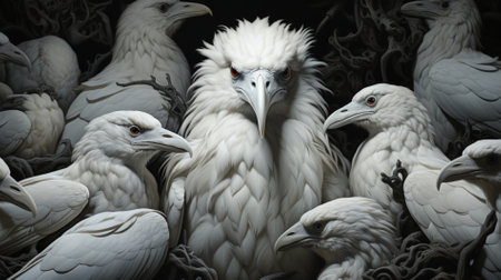 flock of white birds close-up portraits, Generative AI