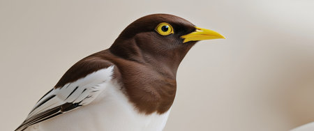 AI Generated. Brown and white bird with a yellow beak and yellow eyes