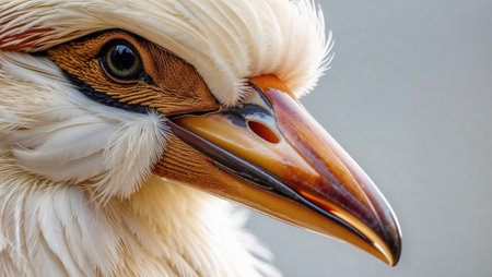 White bird's intense eye and textured beak close-up.