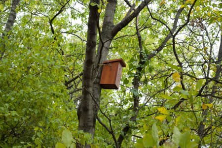 Spring birdhouses in the trees are boxes, usually resembling a house intended for a bird's nest.