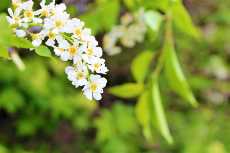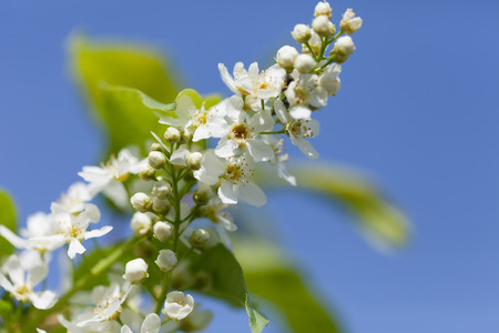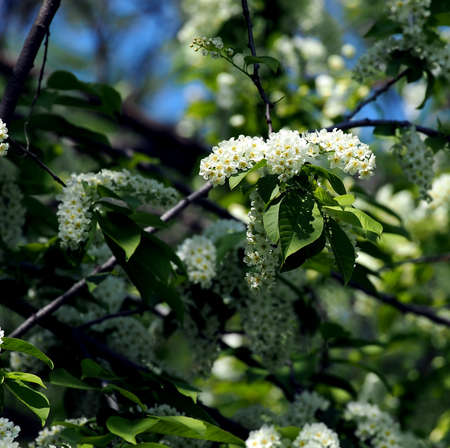 White scented blossom of bird-cherry tree