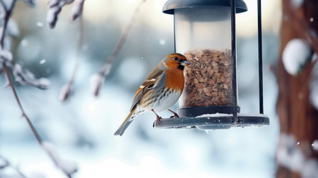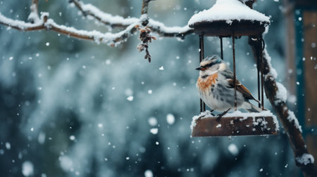 This tranquil digital artwork employs subtle gradients and particle simulations to evoke a hushed, nurturing ambiance with chilled color harmony. Suited for wildlife bloggers, environmental nonprofits, holiday stationery, social media graphics, or classroom resources on seasonal bird care. Its understated elegance supports versatile scaling in web banners, prints, an... AI-generated illustration.