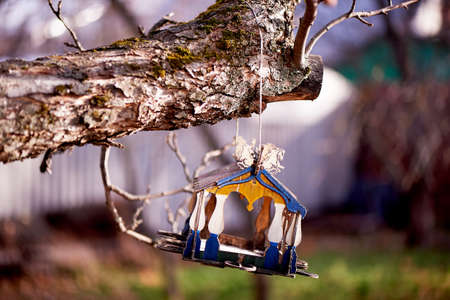 Bird feeders. tree house for the birds, cheerful apartment