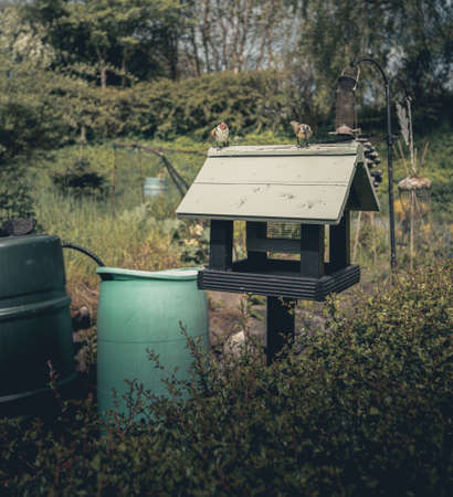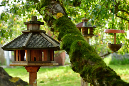 bird feeder houses in a German garden in autumn