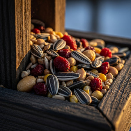 birdfeeder filled with colorful sunflower seeds, created with generative ai
