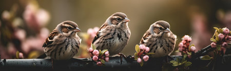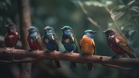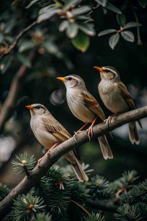 Chirpy Birds tree branch wildlife. Fauna wild. Generate Ai
