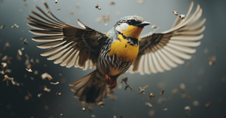 a starling gracefully soars through the forest at an impressive speed, captured in stunning detail in this real 8k image. ai generated