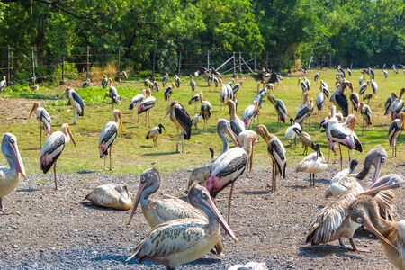 Birds in Safari World Zoo in Bangkok in a summer day