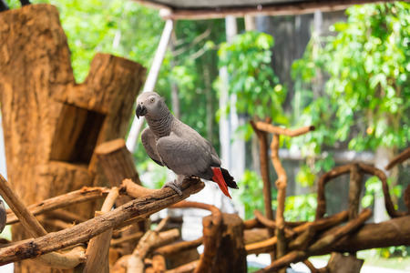 African grey parrot Psittacus erithacus perched on branch at Khao Kheow Open Zoo located in Chonburi province Thailand.