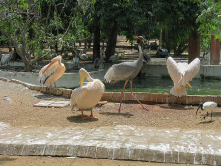 storks and other birds in Zoo. High quality photo