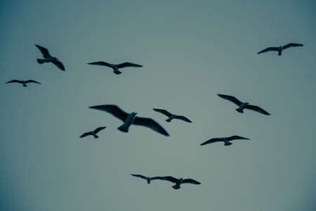 Flock of seagulls in flight, nature.