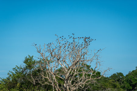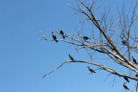 Several birds sitting on the branches of a leafless tree, on the St. John's river, Jacksonville, Florida, USA