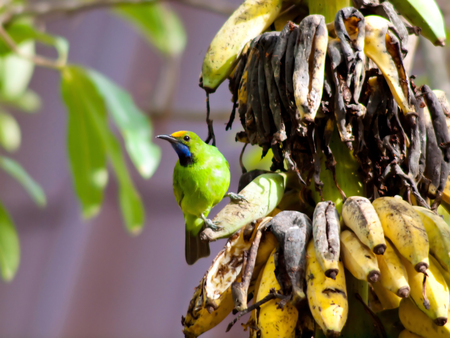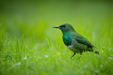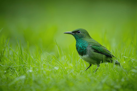 Green honeycreeper (Chlorophanes spiza), male juvenile, near Puerto Viejo de Sarapiqui, Costa Rica.