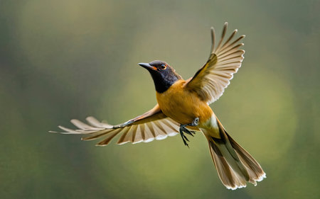 Black-headed Bulbul (Cyornis cinerea) in flight