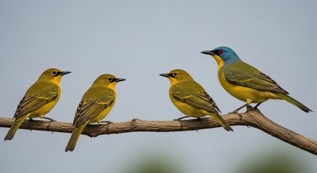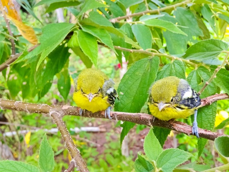 Group of Yellow-bellied Bulbul bird sitting on a branch