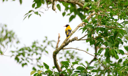 Indian Golden Oriole - Oriolus oriolus kundoo, beautiful yellow and black bird from Asian forests and woodlands, Sri Lanka.