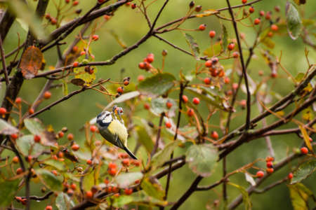 The yellow titmouse sitting over a rowan-tree