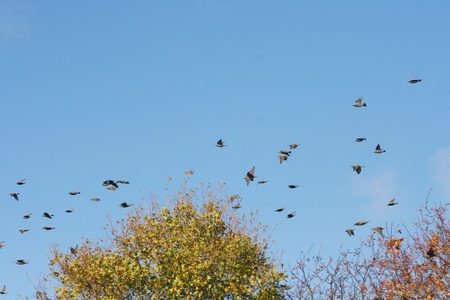 a migratory flock in search of food before the flight to the South