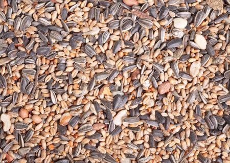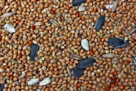Bird seeds background, close up, macro view