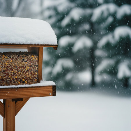 Chaffinches Delight in a Snowy Garden, Seeking Refuge and Nourishment During Cold Winter Days