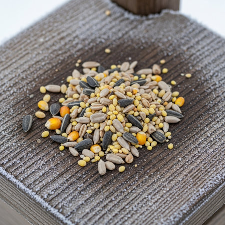 A handful of bird seed scattered in the snow