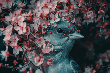 Vibrant Bird flowers portrait. Life still. Generate Ai