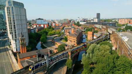 Deansgate Castlefield station in Manchester - aerial view - MANCHESTER, UK - AUGUST 15, 2022