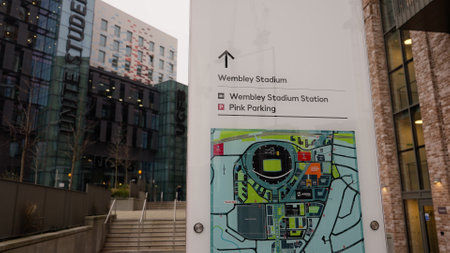Direction sign and Map to Wembley stadium - LONDON, UK - DECEMBER 20, 2022