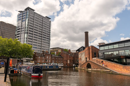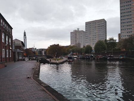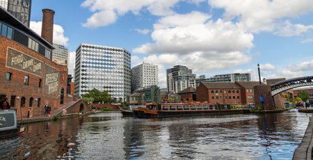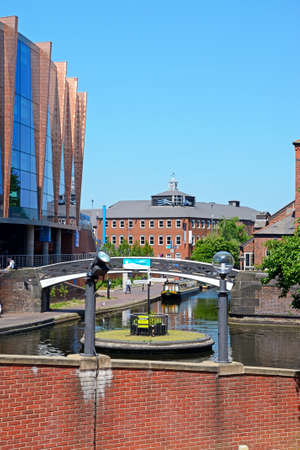 Birmingham water canal network - famous Gas Street Basin. West Midlands, England.