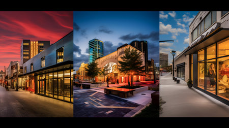 A vibrant urban landscape showcasing modern architecture and a mix of residential and commercial buildings under bright daylight. The image captures the essence of city life and development.